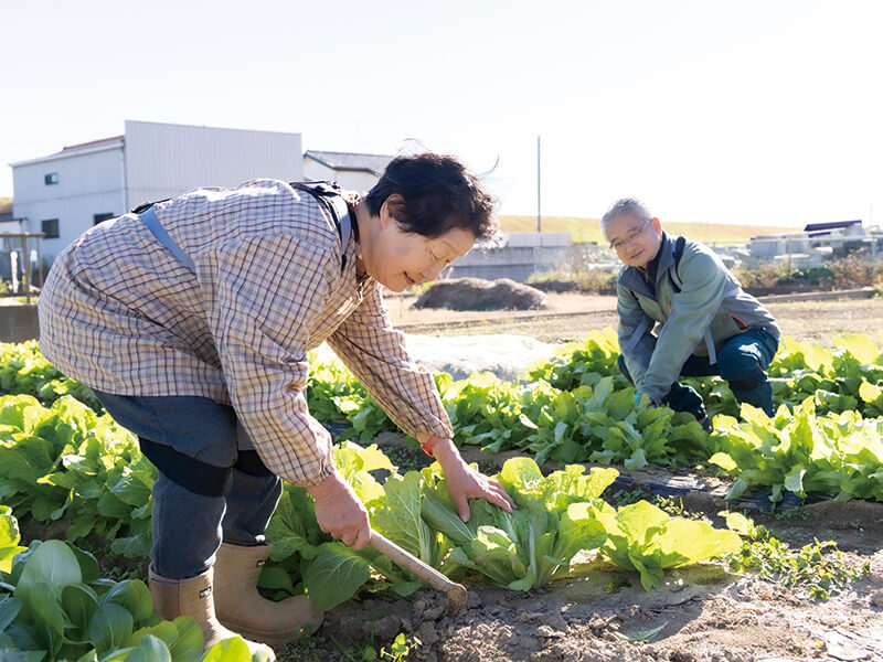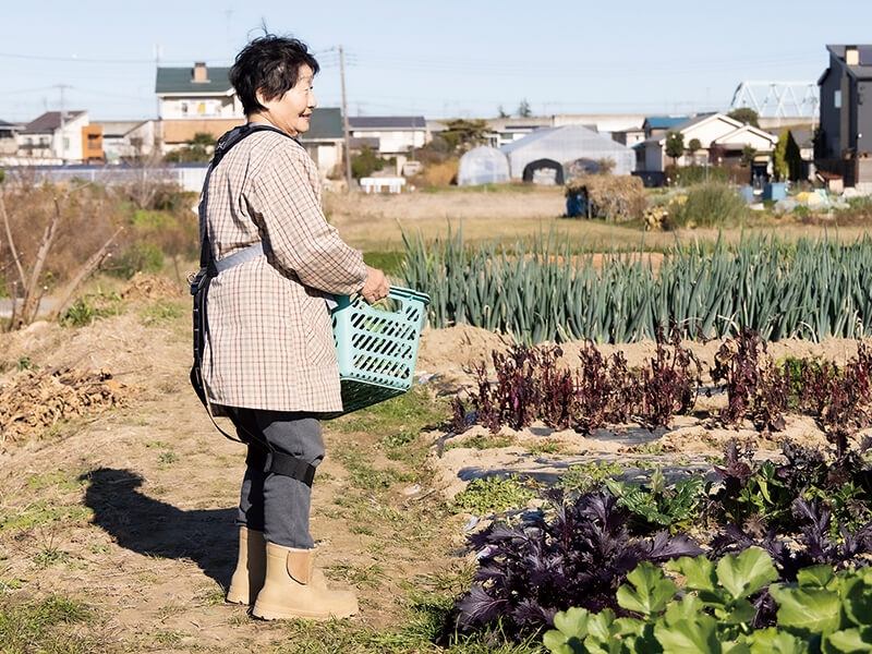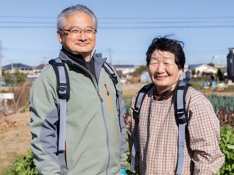 位於埼玉縣三鄉市、栽種葉菜、蔥、白蘿蔔等作物的農家—石井廣幸先生與其母親石井和子女士。